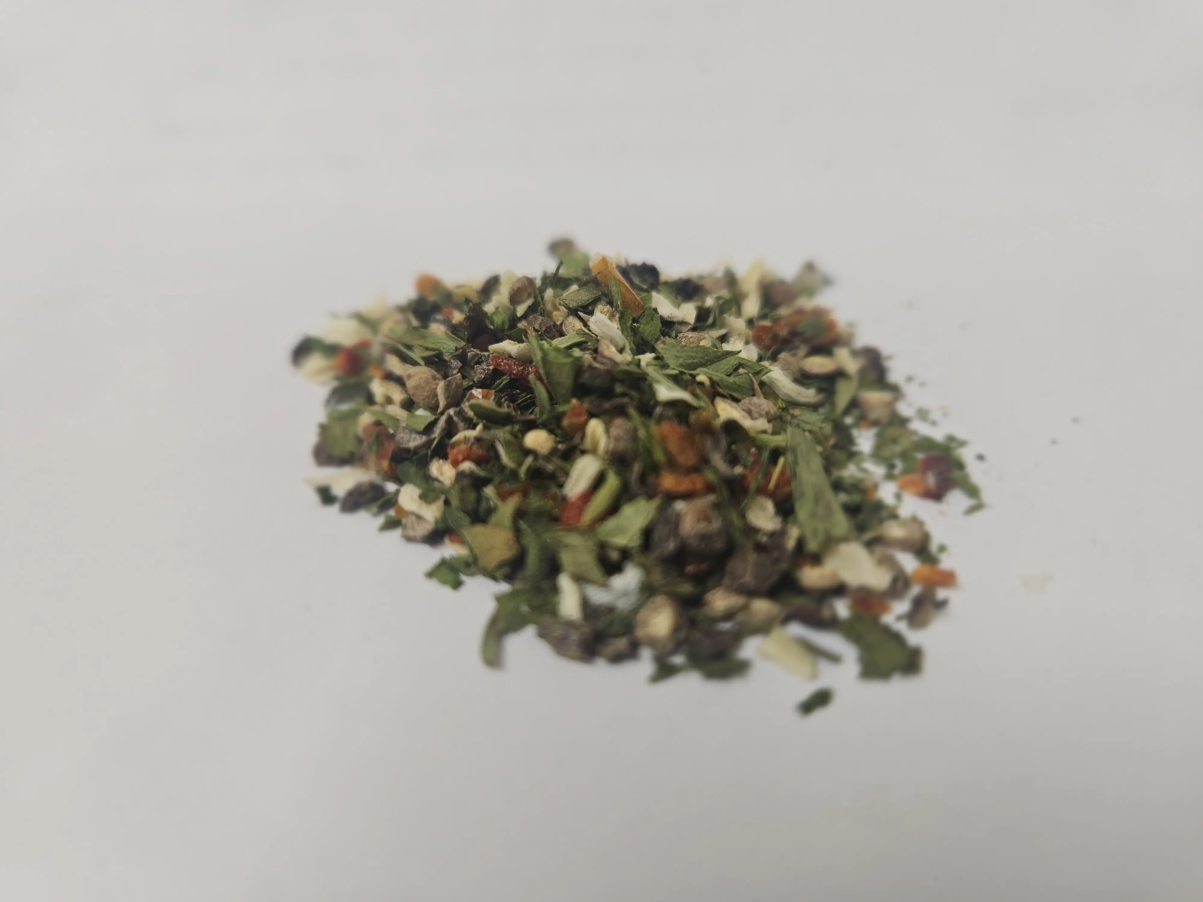 Zutaten: Pfeffer schwarz, Zwiebelgranulat, Paprikaflocken rot (süß), Liebstöckel, Petersilie, Kerbel, Estragon