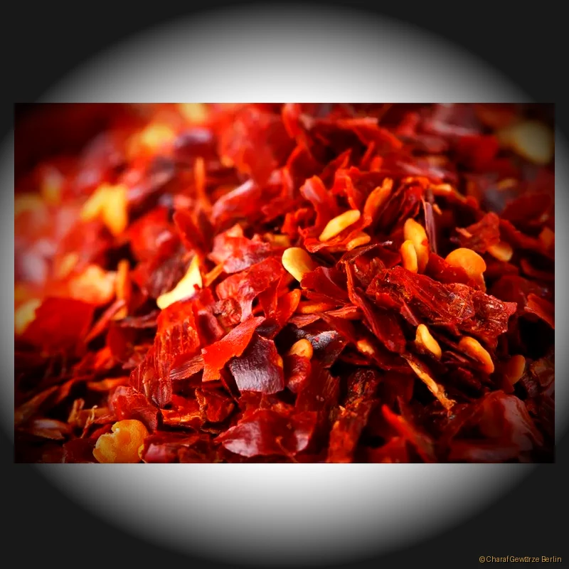 - ✔ Grobe rote Jalapeño-Chili Flocken – mild bis mittelscharf