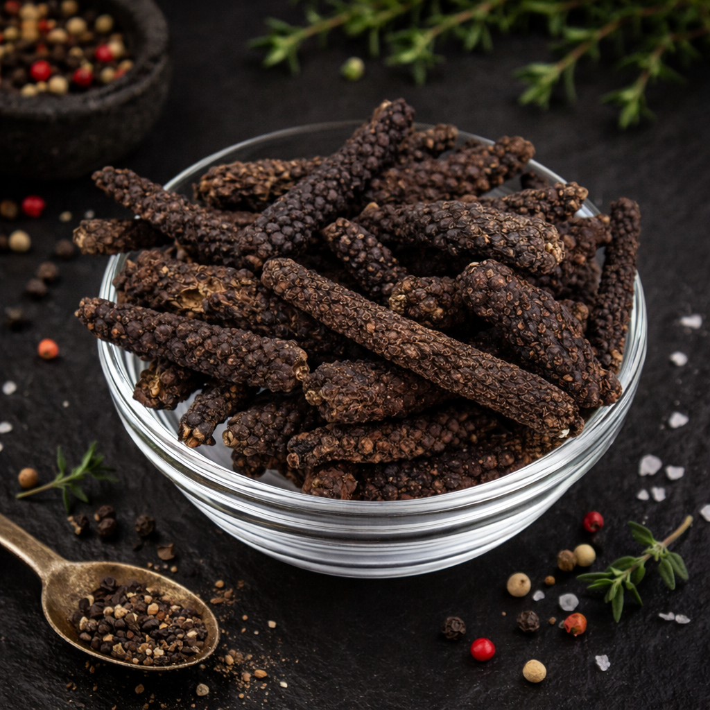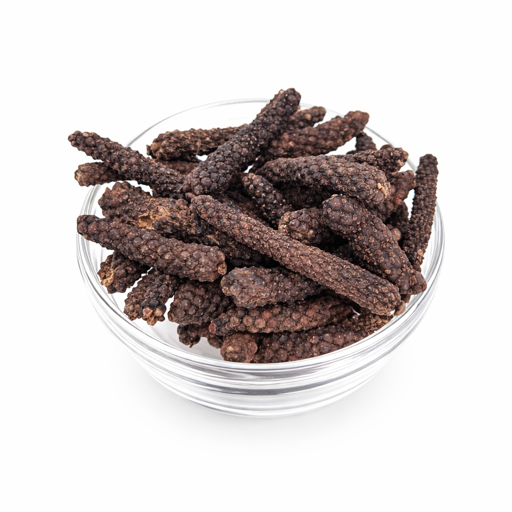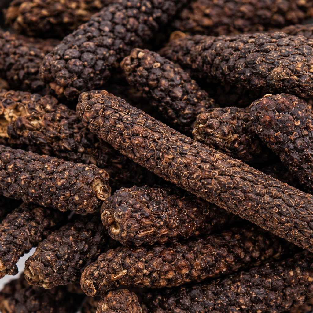 Langer Pfeffer, auch Pippali genannt, gehört zu den ältesten bekannten Pfefferarten der Welt. Schon in der Antike wurde dieses besondere Gewürz in Europa und Asien geschätzt. Die länglichen Pfefferfrüchte besitzen ein intensives Aroma mit einer angenehmen Schärfe und einer leicht süßlichen Note.