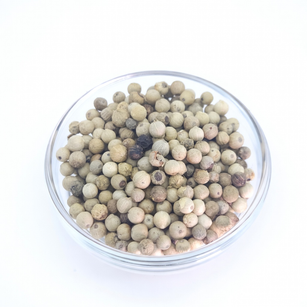 Weißer Pfeffer wird aus vollständig gereiften Pfefferbeeren gewonnen, deren äußere Schale entfernt wird. Dadurch entsteht ein besonders klares, intensives Pfefferaroma mit einer kräftigen, direkten Schärfe. Weißer Pfeffer wird häufig in der europäischen und asiatischen Küche verwendet.